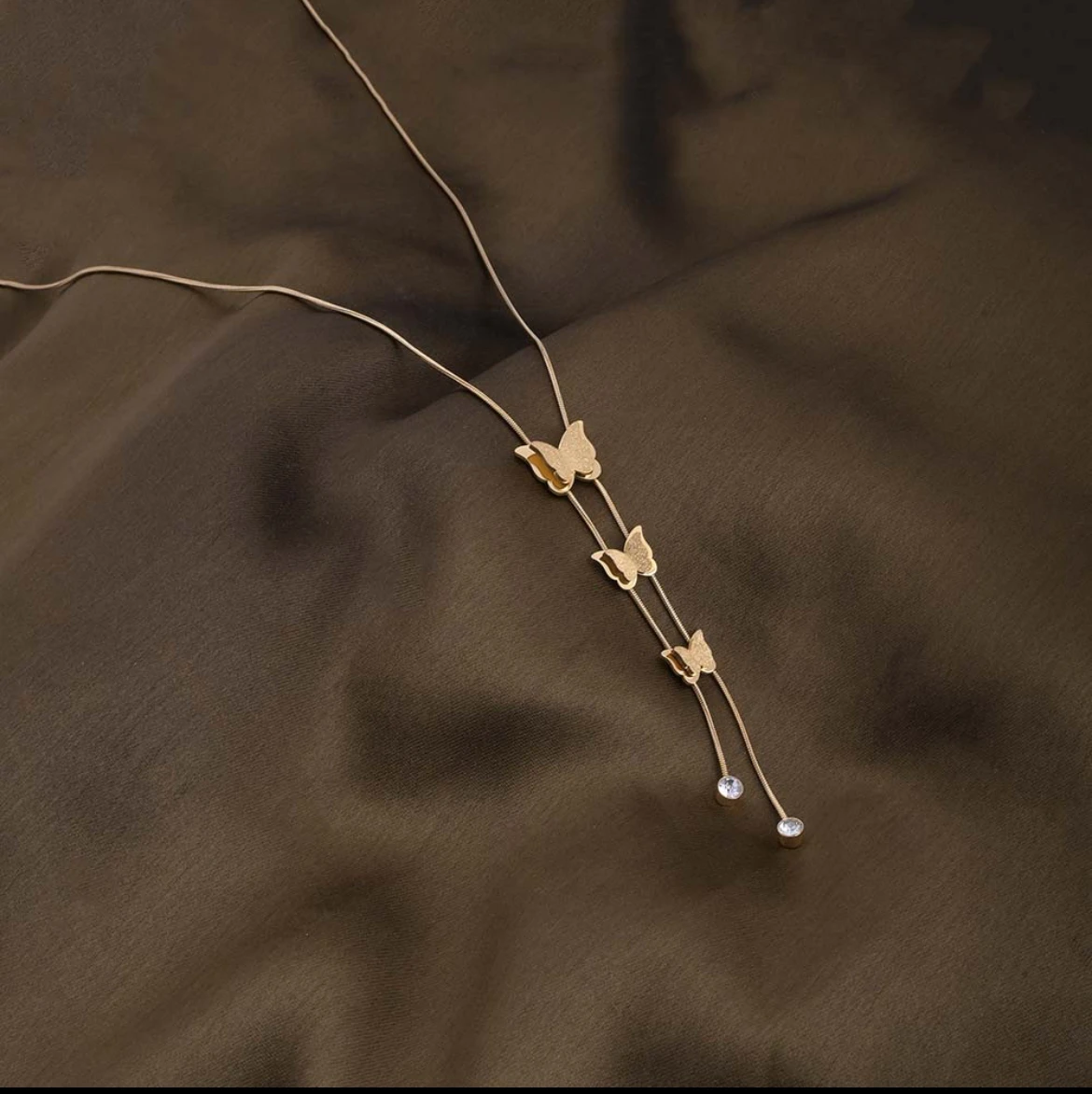 MATERIAL:Base Metal: Stainless SteelPlating: 18k Gold ToneType of Stone: Cubic ZirconiaStone Color: WhiteNo of Stones: 2DETAILS & DIMENSIONS:Necklace Type: Lariat NecklaceClosure: Lobster ClawLength: 49.5 cmWeight: 6.06 gmNet Quantity: 1
