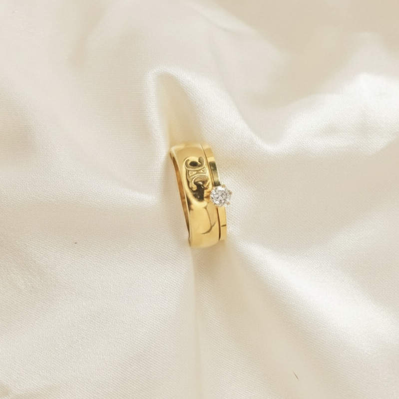 MATERIAL:Base Metal: Stainless SteelPlating: 18k Gold ToneType of Stone: Cubic ZirconiaStone Color: WhiteDETAILS & DIMENSIONS:Ring Type: Minimal RingsWeight: 4 gmNet Quantity: 2