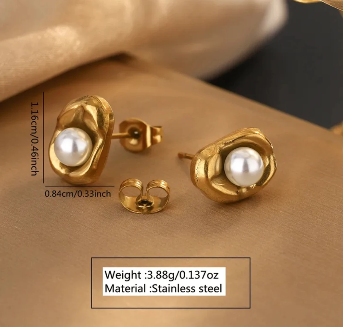 DETAILS:Base Metal: Stainless SteelPlating: 18k Gold ToneEarring Type: Stud EarringClosure Type: Push BackNet Quantity: 1 PairDIMENSIONS:Length: 2 cmWeight: 13.25 gm