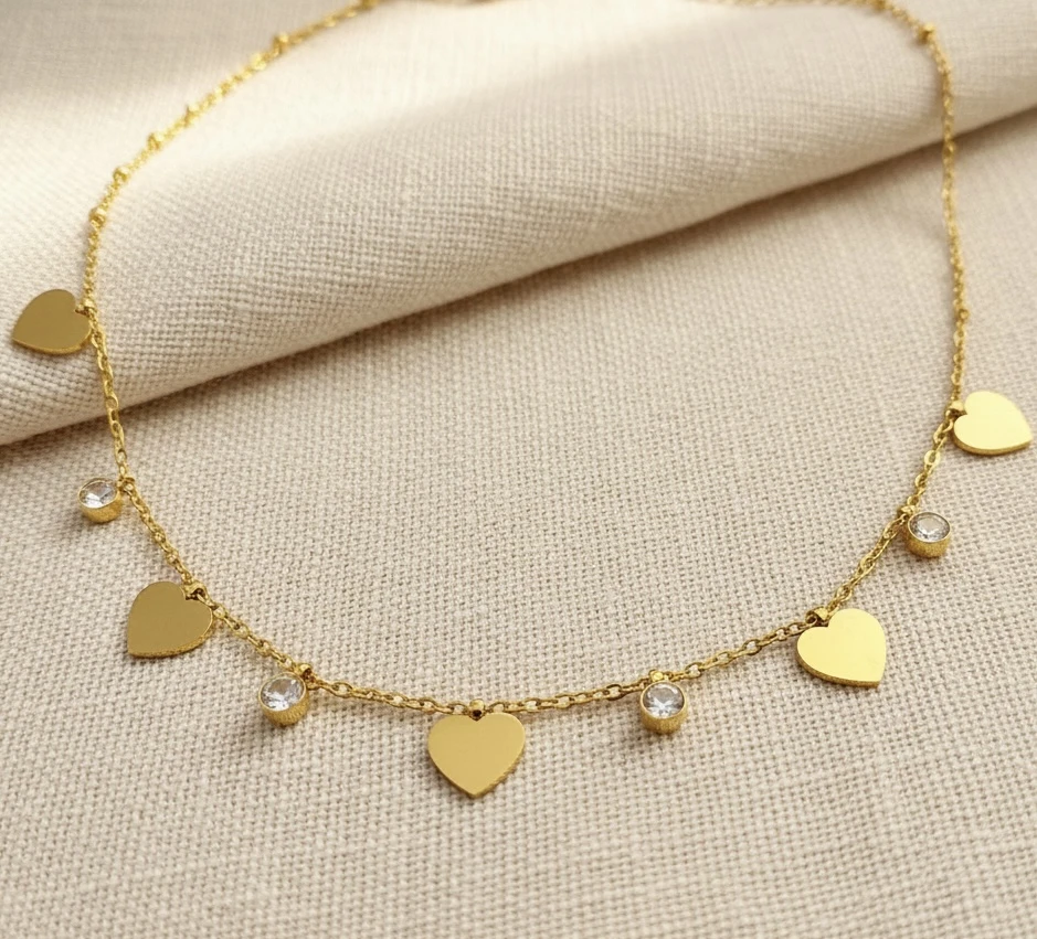 MATERIAL:Base Metal: Stainless SteelPlating: 18K Gold ToneType of Stone: Cubic ZirconiaStone Color: WhiteNo of Stones: 5DETAILS & DIMENSIONS:Necklace Type: Station NecklaceClosure: Lobster ClawLength: 47.5 cmWeight: 4.65 gmNet Quantity: 1