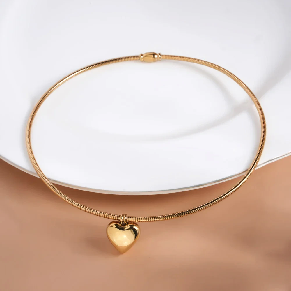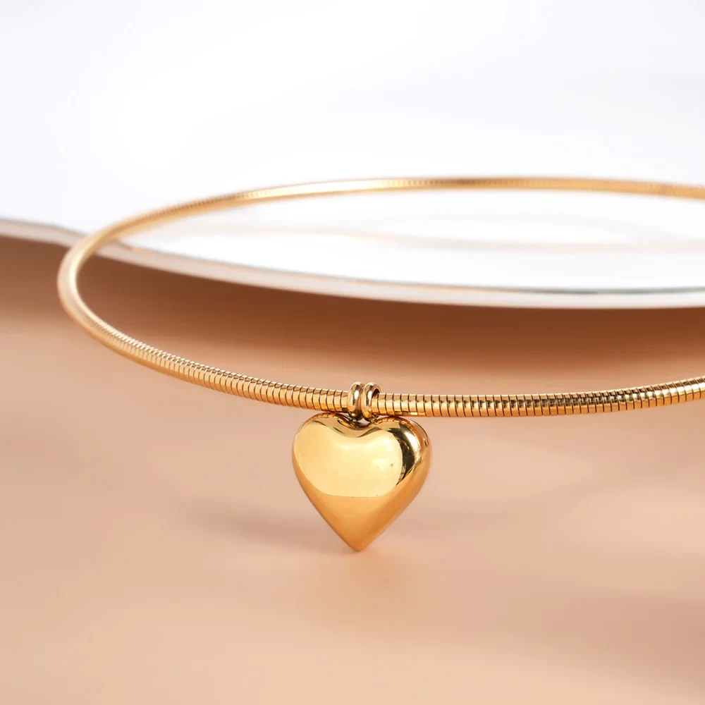 Gold Omega Chain with Heart Pendant