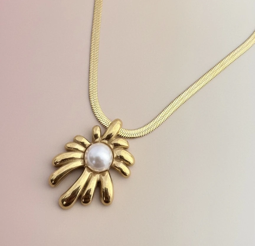 DETAILS:Base Metal: Stainless SteelPlating: 18k Gold ToneSub Type: NecklaceClosure Type: Lobster ClawNet Quantity: 1Type of Stone: PearlStone Color: WhiteNo of Stones: 1DIMENSIONS:Length: 39 cmWeight: 5.07 gm