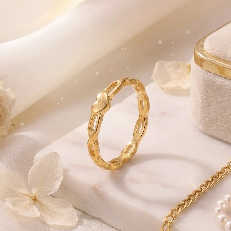 Love makes its own statement. Crafted from premium stainless steel and finished in a sleek black tone, our luxe Heart loop Ring blends bold elegance with a modern romantic edge. Its sculpted heart silhouette and smooth contours reflect meticulous craftsmanship made especially for you. Waterproof, anti-tarnish, and effortlessly striking, it brings a chic, contemporary charm to any look - for you, for your confident elegance, for your signature jewellery style.
