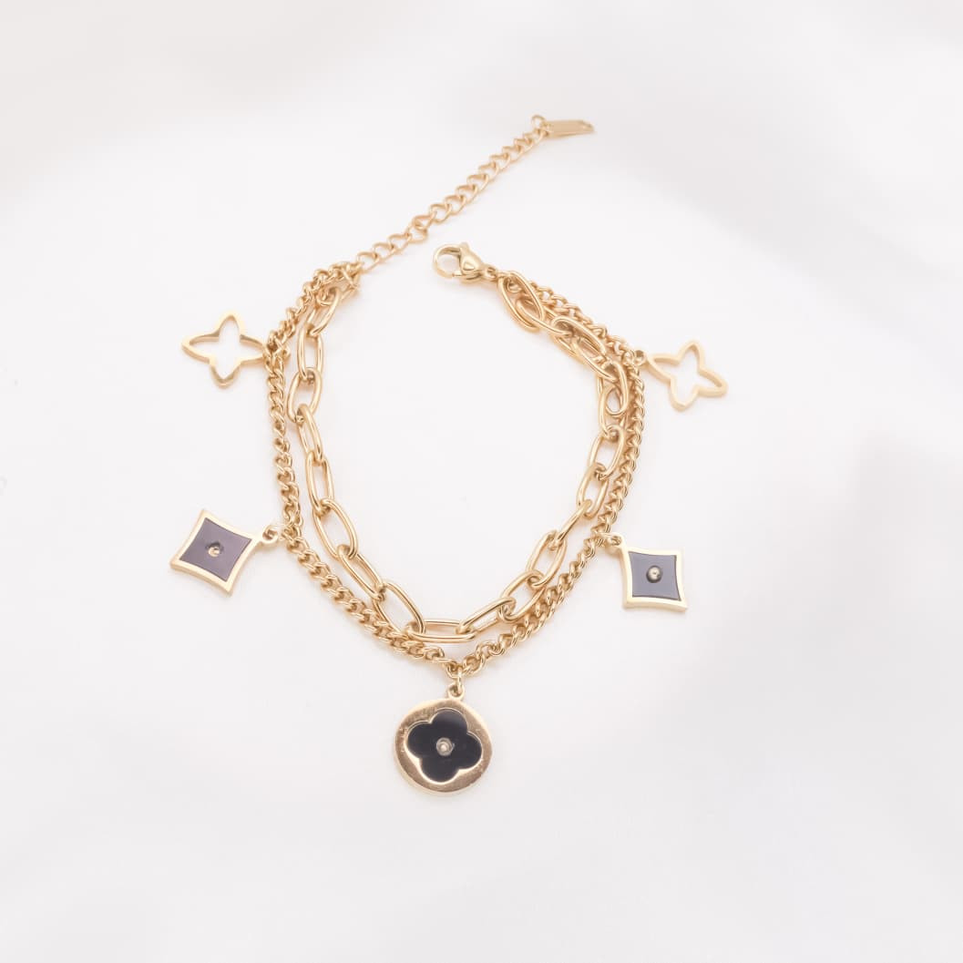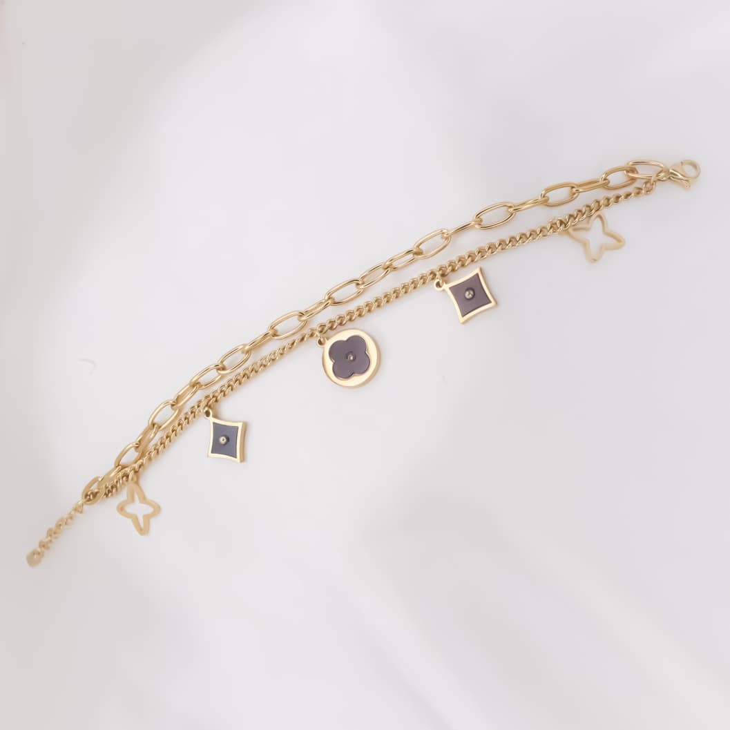 DETAILS:Base Metal: Stainless SteelPlating: 18k Gold ToneBracelet Type: Layered BraceletClosure Type: Lobster ClawDIMENSIONS:Length: 15 cmWeight: 6.92 gmNet Quantity: 1