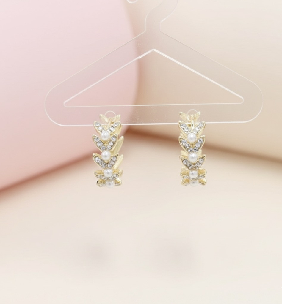 MATERIAL:Base Metal: Stainless SteelPlating: 18k Gold ToneType of Stone: PearlStone Color: WhiteDETAILS & DIMENSIONS:Earrings Type: Hoop EarringClosure: HoopwireLength: 2 cmWeight: 9.63 gmNet Quantity: 1 Pair