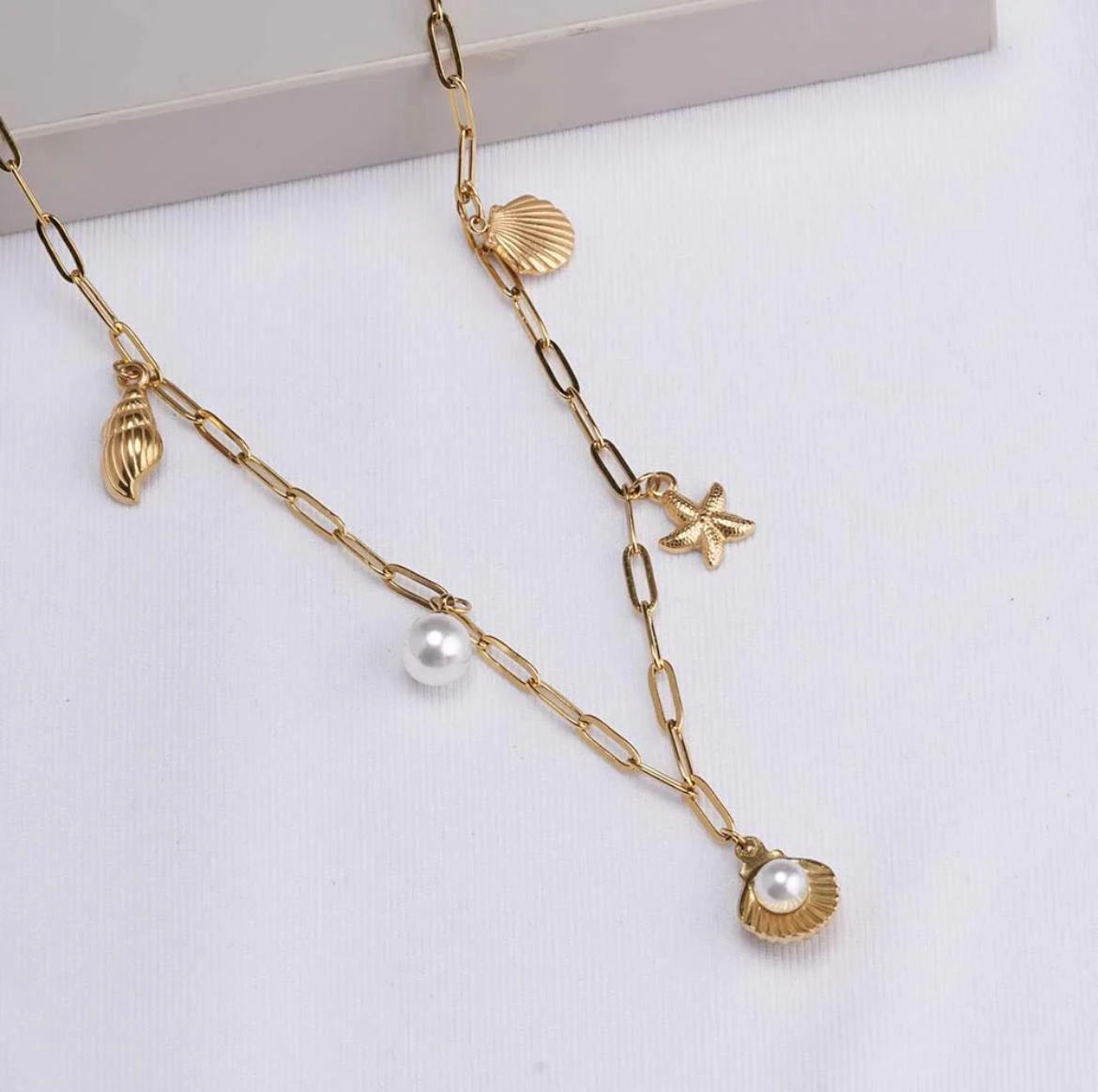 MATERIAL:Base Metal : Stainless SteelPlating : 18kt Gold ToneType of Stone: PearlNo of Stones: 1DETAILS & DIMENSIONS:Closure : Lobster ClawChain Length : Short/Chest Length (54 cm)Weight: 11 gmNet Quantity: 1