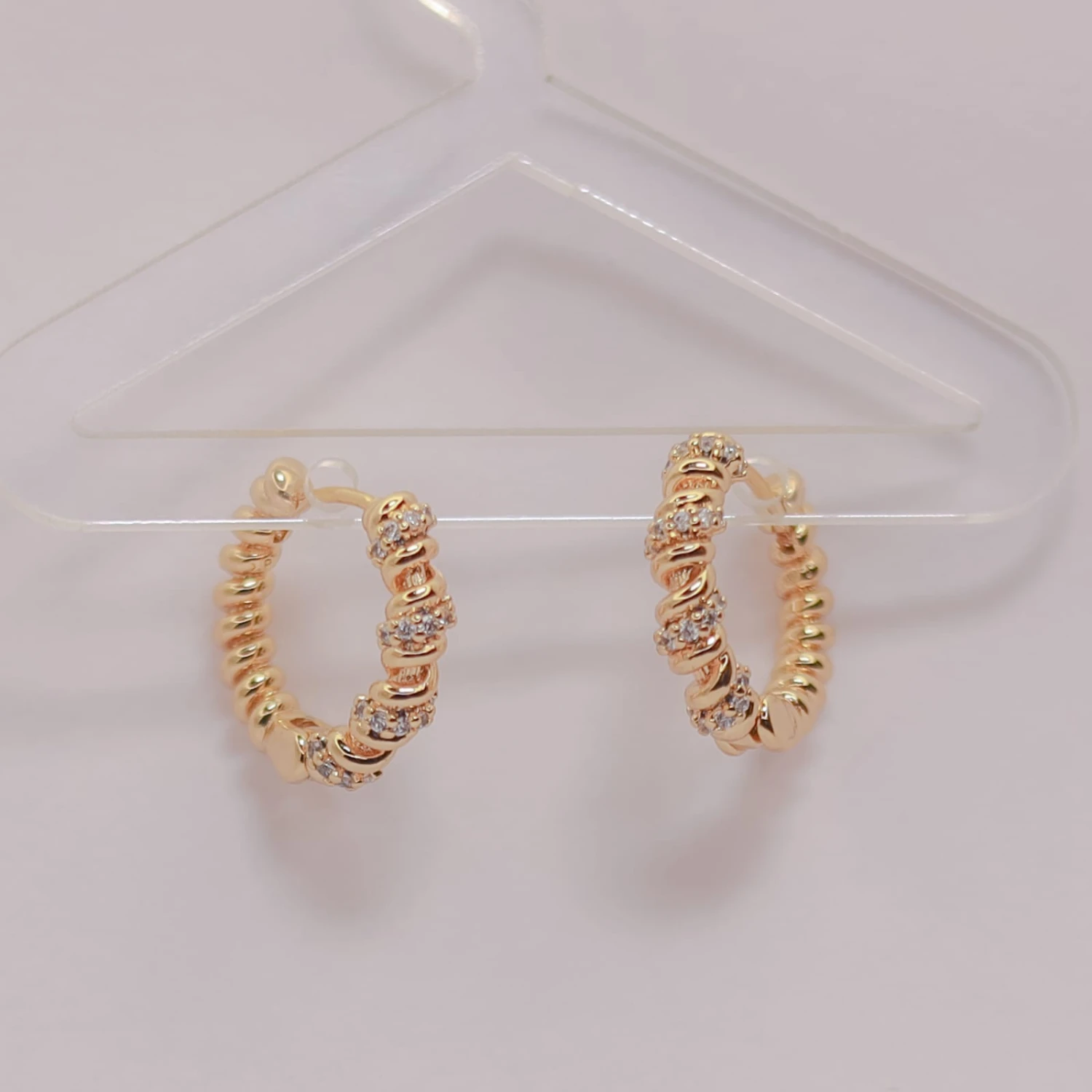 DETAILS:Base Metal: Stainless SteelPlating: 18k Gold ToneEarring Type: Hoop EarringClosure Type: HoopwireNet Quantity: 1 PairType of Stone: Cubic zirconiaStone Color: White