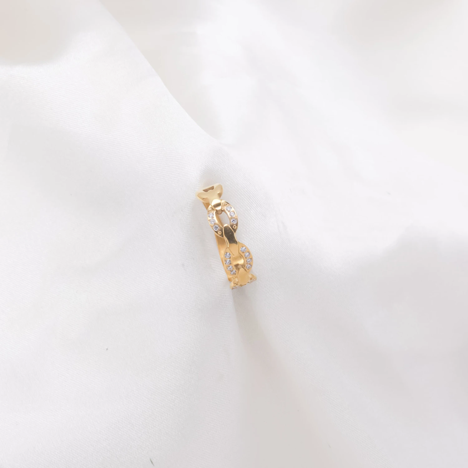 MATERIAL:Base Metal: Stainless SteelPlating: 18k Gold ToneType of Stone: Cubic ZirconiaStone Color: WhiteDETAILS & DIMENSIONS:Ring Type: Minimal RingsWeight: 2.2 gmNet Quantity: 1