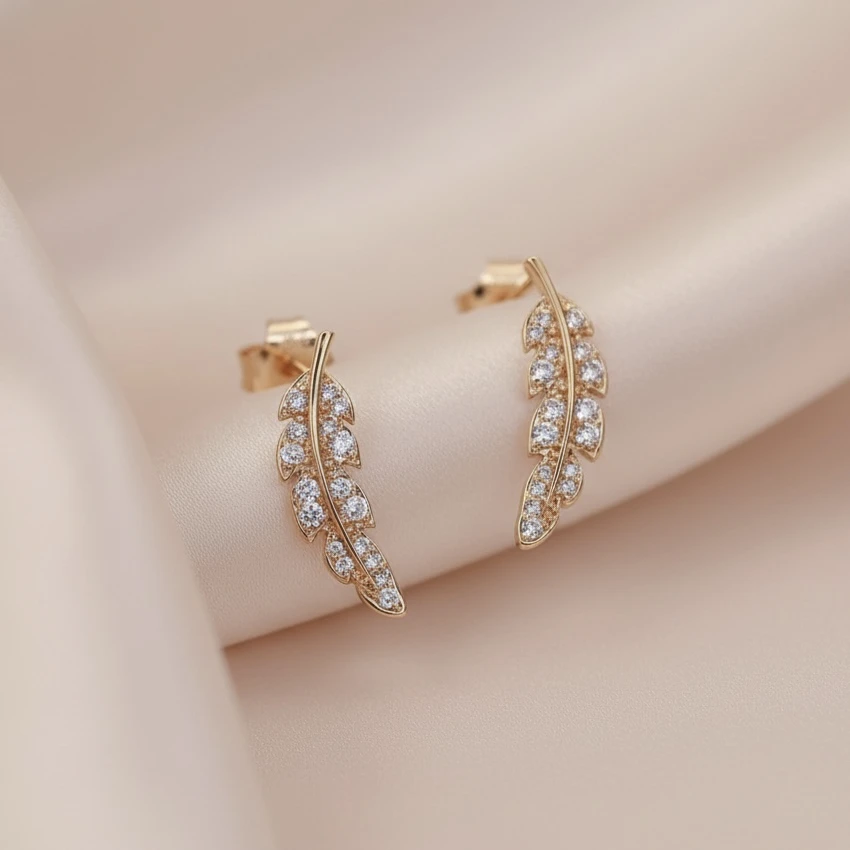 MATERIAL:Base Metal: Stainless SteelPlating: 18k Gold ToneType of Stone: Cubic ZirconiaStone Color: WhiteDETAILS & DIMENSIONS:Earrings Type: Stud EarringClosure: Push PlugsLength: 2 cmWeight: 13.4 gmNet Quantity: 1 Pair