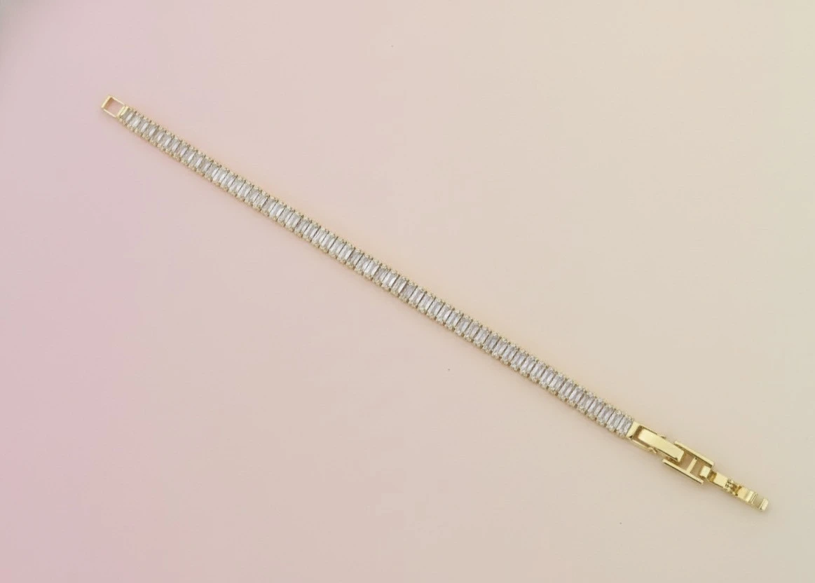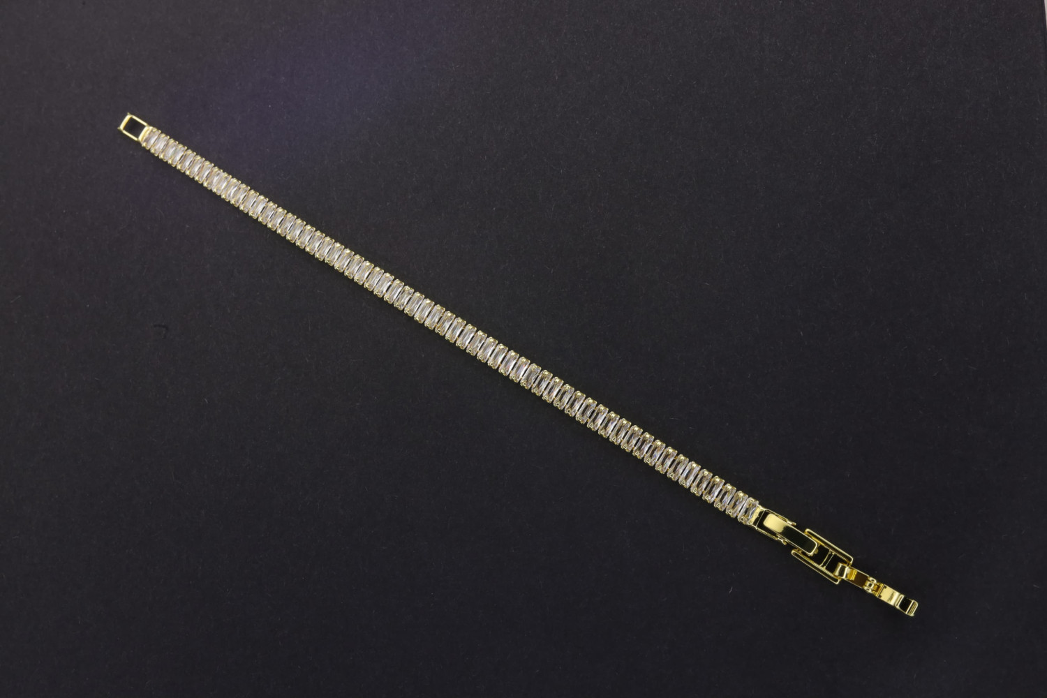Base Metal : Stainless SteelPlating : Gold ToneBracelet Size : One SizeWeight : 15 gmsBracelet Type : Sleek/ Dainty BraceletsNo of Stones: 10Type of Stone: Cubic ZirconiaKey Features : Water Proof, Anti Tarnish, Skin Friendly, Light Weight
