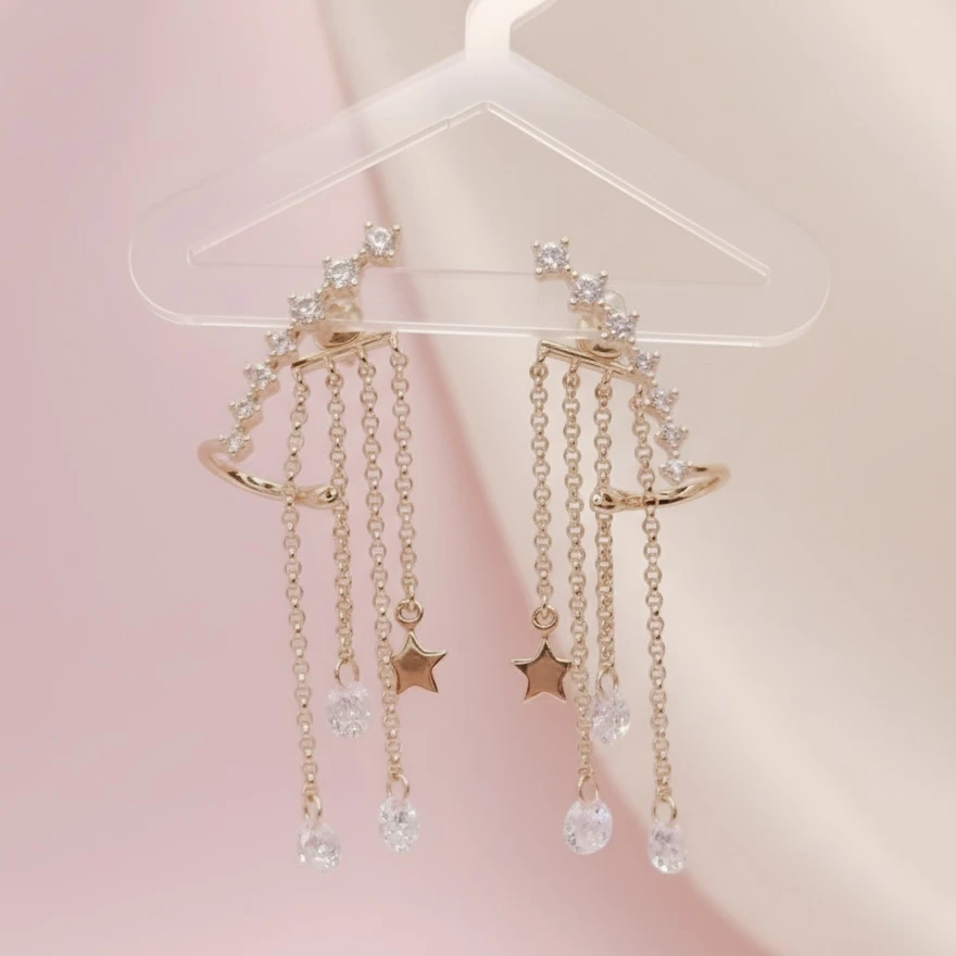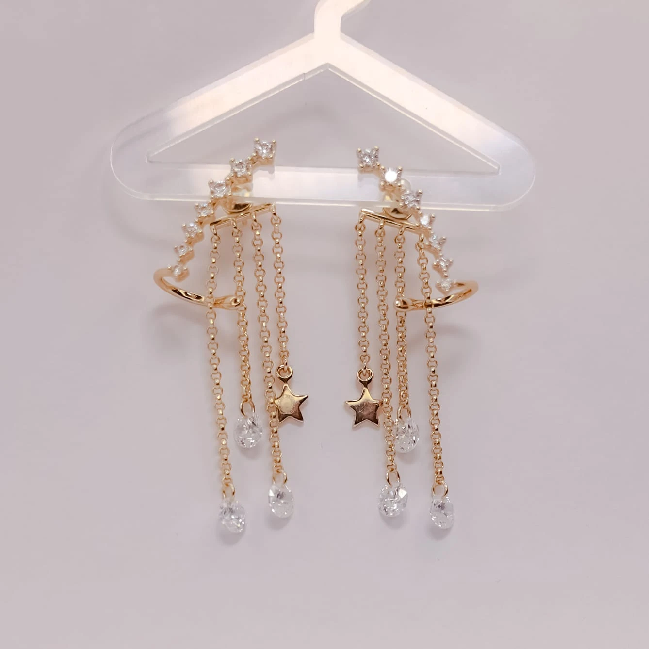 DETAILS:Base Metal: Stainless SteelPlating: 18k Gold ToneEarring Type: Danglers & ClimberClosure Type: Push PlugsNet Quantity: 1 PairDIMENSIONS:Length: 4.6 cmWeight: 2.22 gm