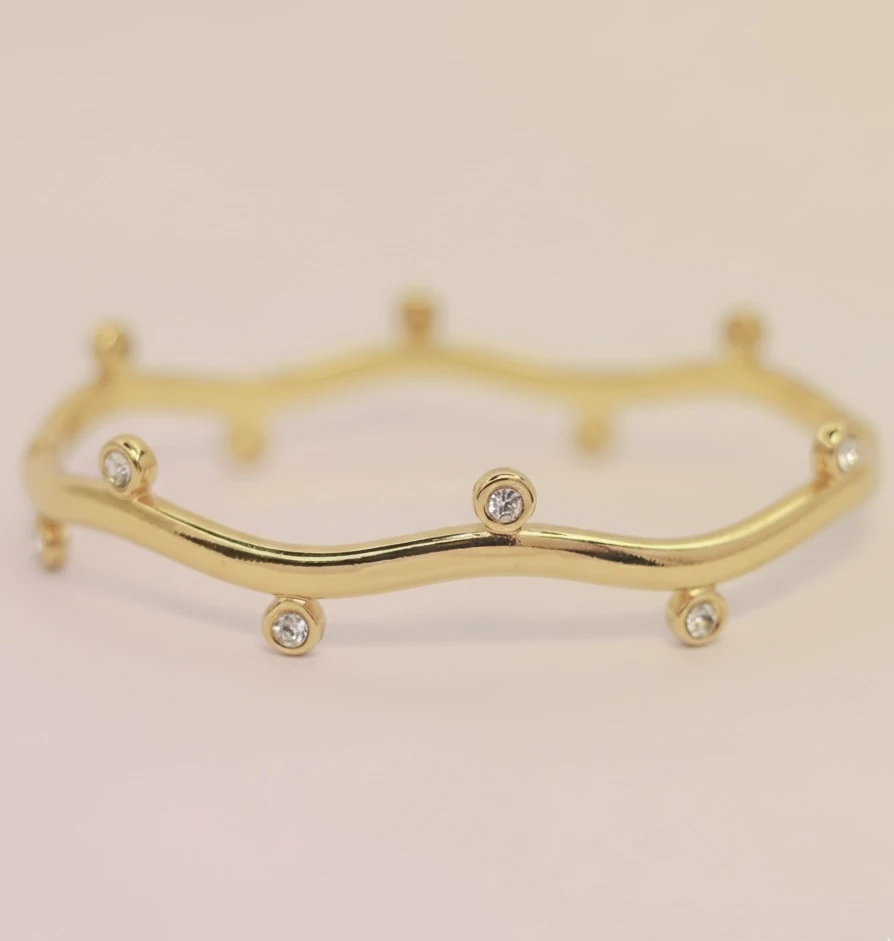 MATERIAL:Base Metal: Stainless SteelPlating: 18k Gold ToneType of Stone: Cubic ZirconiaStone Color: WhiteDETAILS & DIMENSIONS:Bracelet Type: Bangle BraceletClosure: Clip-OnLength: 6 cmWeight: 23.6 gmNet Quantity: 1