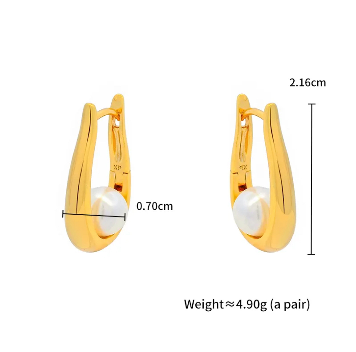 MATERIAL:Base Metal: Stainless SteelPlating: 18kt Gold ToneType of Stone: PearlNo of Stones: 2Stone Color: WhiteDETAILS & DIMENSIONS:Closure: HoopwireEarring Type: Hoop EarringHeight: 4 cmWeight: 1.5 gmNet Quantity: 1 Pair