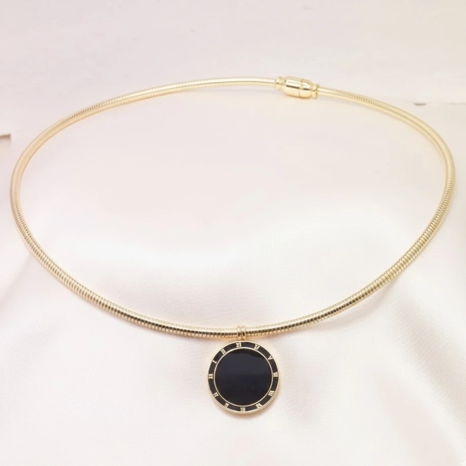 MATERIAL:Base Metal: Stainless SteelPlating: 18K Gold ToneDETAILS & DIMENSIONS:Necklace Type: ChokerClosure: Screw ClaspLength: 43 cmWeight: 8.91 gmNet Quantity: 1