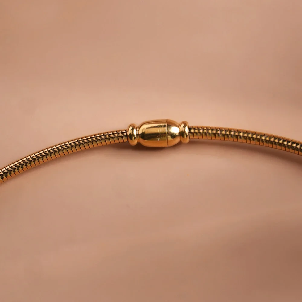 MATERIAL:Base Metal: Stainless SteelPlating: 18K Gold ToneDETAILS & DIMENSIONS:Necklace Type: ChokerClosure: Screw ClaspLength: 43 cmWeight: 8.91 gmNet Quantity: 1