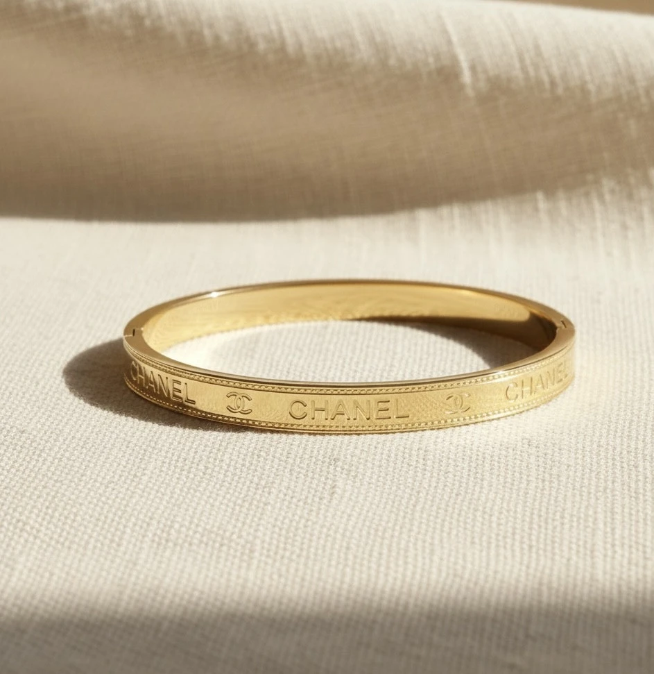 MATERIAL:Base Metal: Stainless SteelPlating: 18k Gold ToneDETAILS & DIMENSIONS:Bracelet Type: Bangle BraceletShape: OvalClosure: Clip-OnLength: 6 cmWeight: 13.9 gmNet Quantity: 1